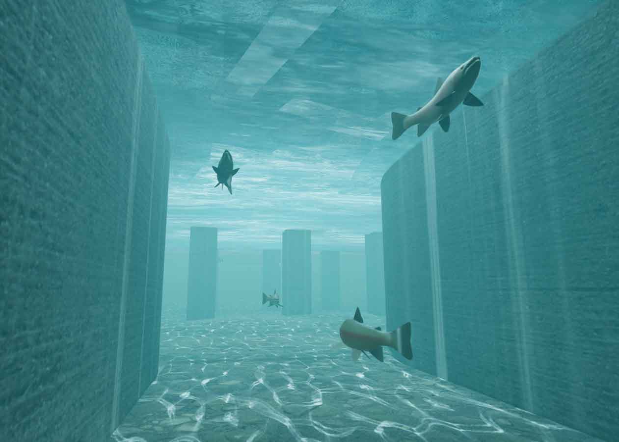 No, when the flow-through dam is not operating (which is almost all of the time), fish will be free to swim upstream and downstream past the facility. The fish passage conduits are designed to mimic the river, with similar depth and velocity, so fish can comfortably move through them. These conduits also allow for sediment and debris to pass through, which minimizes the disruption of ecosystem processes and maintains the natural river dynamics. Only during flood events, when water is being retained, would an advanced trap-and-haul facility be used to pass various fish species and life stages upstream.